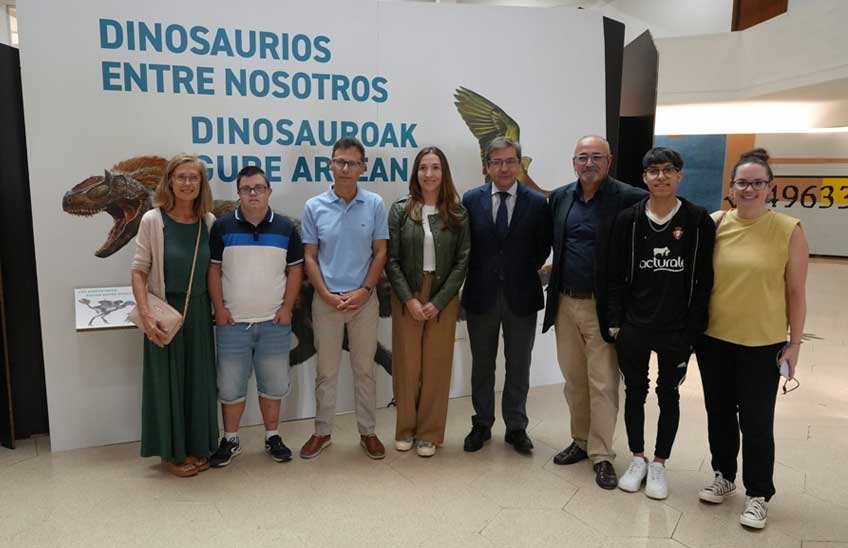 FotoManuel Castells<br>/(de izquierda a derecha): Elvira Lacunza (directora educativa del Centro de Educación Especial El Molino), Alejandro Alzugaray (alumno del Centro de Educación Especial El Molino), Fidel Torcida (director del Museo de Dinosaurios de Salas de los Infantes), Alejandra Castellanos (gerente de desarrollo estratégico del departamento de desarrollo global del Museo Americano de Historia Natural de Nueva York), Carlos Salvador (concejal de Educación, Igualdad y Diversidad Cultural del Ayuntamiento de Pamplona), Ignacio López-Goñi (director del Museo de Ciencias Universidad de Navarra), Lino Valero (alumno del Centro de Educación Especial El Molino) y Natalia Galban (docente del Centro de Educación Especial El Molino).