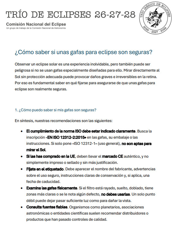 You can consult the recommendations of the National Eclipse Commission to find out if your glasses comply with the relevant regulations and therefore pose no risk to your eyes.